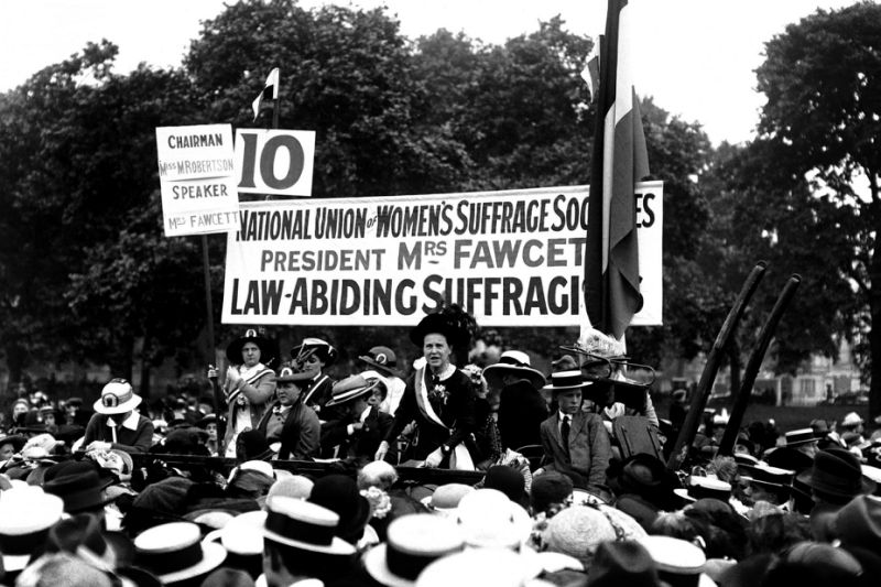 Image: Dame Millicent Fawcett addressing a meeting in Hyde Park - circa 1913 - as president of the National Union of Women's Suffrage Societies.