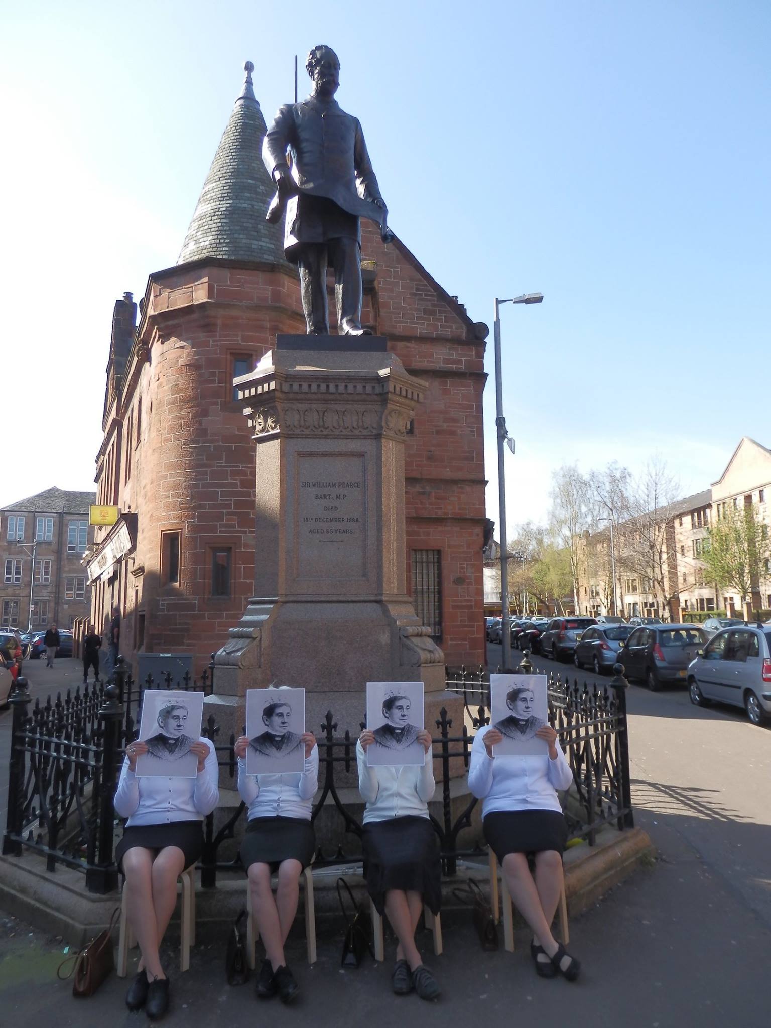 In Govan attention is being called to the lack of a memorial to lady Dinah Pearce. Amonst her many philanthropic achievements she set up the Peace Institute as a gift to the people of Govan, was a pioneer of "Fresh Air Fortnight" which sent hundreds of sick children to convalesce at the coast or countryside, fought to improve living conditions of the poor and to alleviate hardship. She paid for this statue of her husband to be erected but there is no menmorial to her.